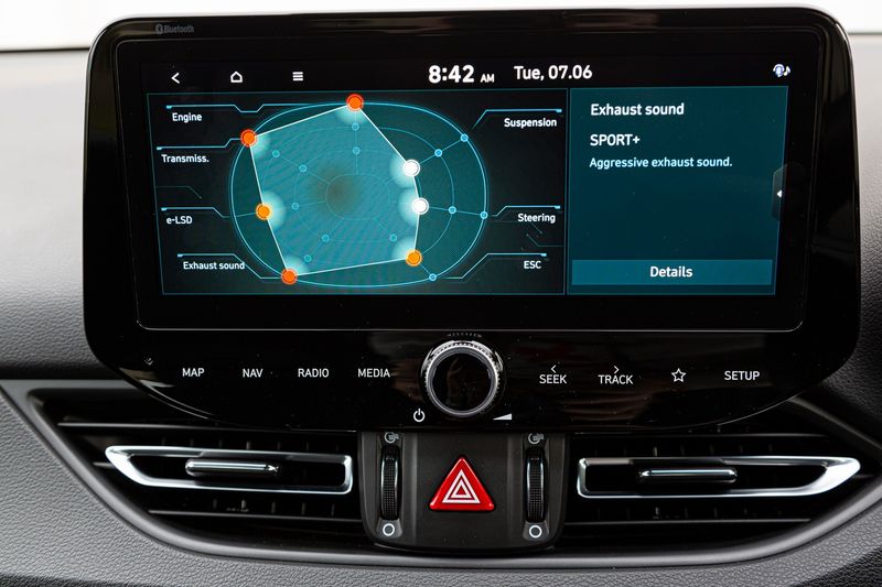 The i30 N, by comparison, has a more conventional layout. While there are no ergonomic shortcomings to speak of, the Hyundai’s cabin just lacks the sparkle of the Volkswagen’s. Considering the Korean model’s sporty exterior, the cabin is decidedly understated.