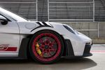 To further enhance its performance, the 911 GT3 RS features a high-performance braking system (ceramic brakes are optional) and adaptive track suspension to ensure pin-sharp handling ability. A Drag Reduction System (RDS) is fitted in a production Porsche for the first time and incorporates aero wings that can be flattened out at the push of a button but an airbrake function can also be activated for aero deceleration at high speed, assisting the brakes to achieve the necessary deceleration during emergency braking. The GT3 RS rides on centre-lock 20-inch (front) and 21-inch (rear) forged light alloy wheels.
