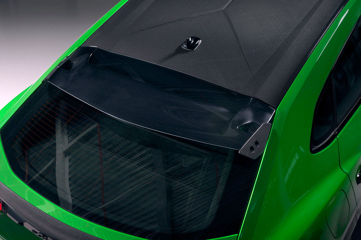 Styling changes for the 25 mm-longer Performante (now measuring 5 137 mm from nose to tail), meanwhile, include a more prominent bonnet and front-bumper design. The bonnet (including the air outlet) is forged from lightweight carbon fibre and offered as standard in body colour or as an option in partially visible carbon. The roof is also optionally available in carbon fibre. Lamborghini claims the “extensive use” of composite materials makes the Urus Performante the vehicle with the “highest number of carbon-fibre parts in its segment”.
