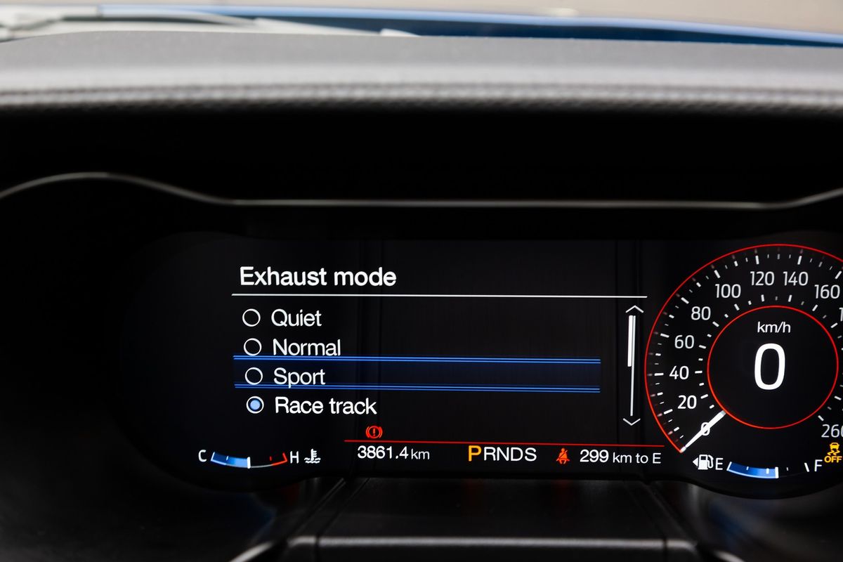 The first thing you’ll notice is the glorious engine sound – it’s an overwhelming explosion of petrol being converted into horsepower! It’s anything but subtle and, when the active exhaust is fully open, revving beyond 3500 rpm sounds downright rude. Thankfully, you can quieten things down and Ford offers a Good Neighbour mode, because cold starts are also boisterous.