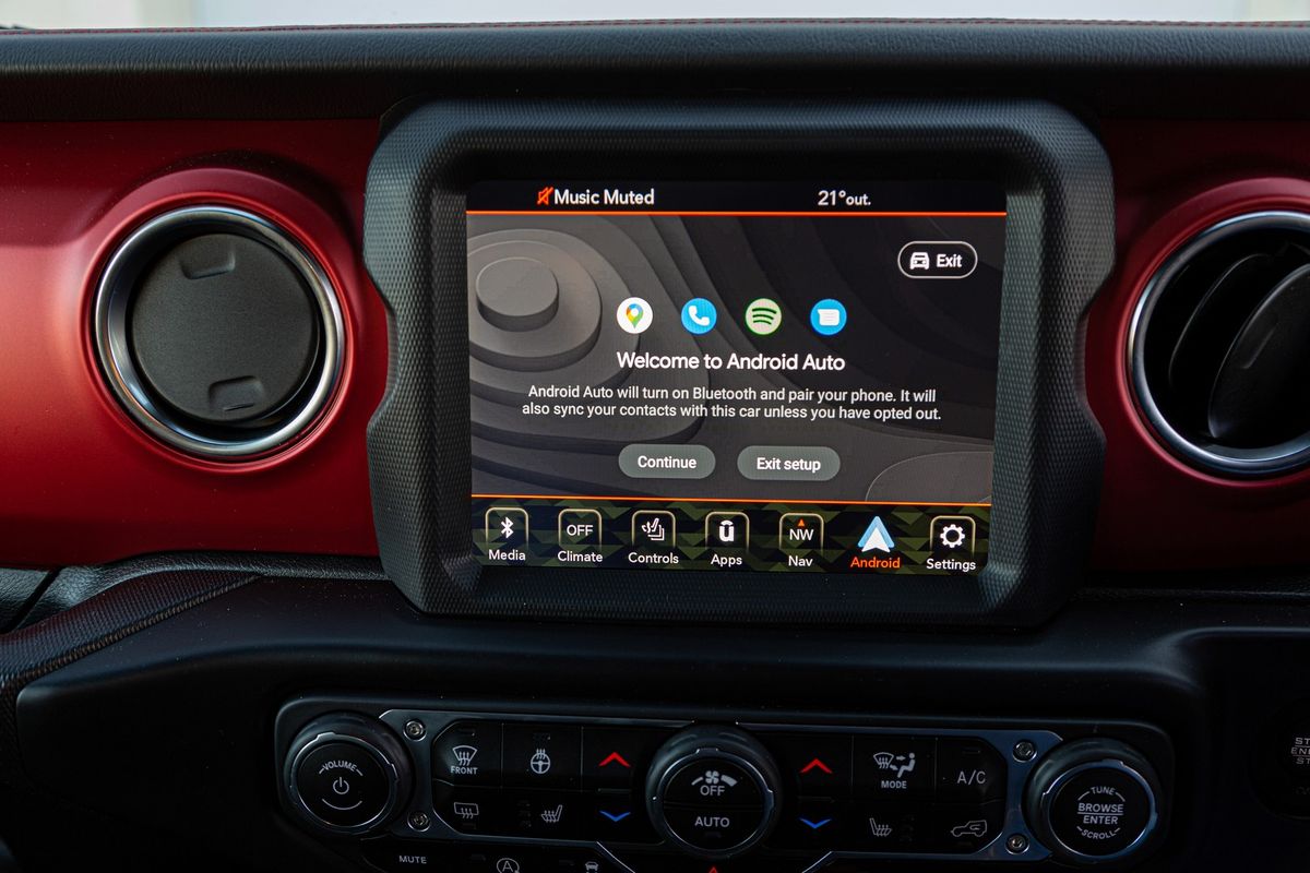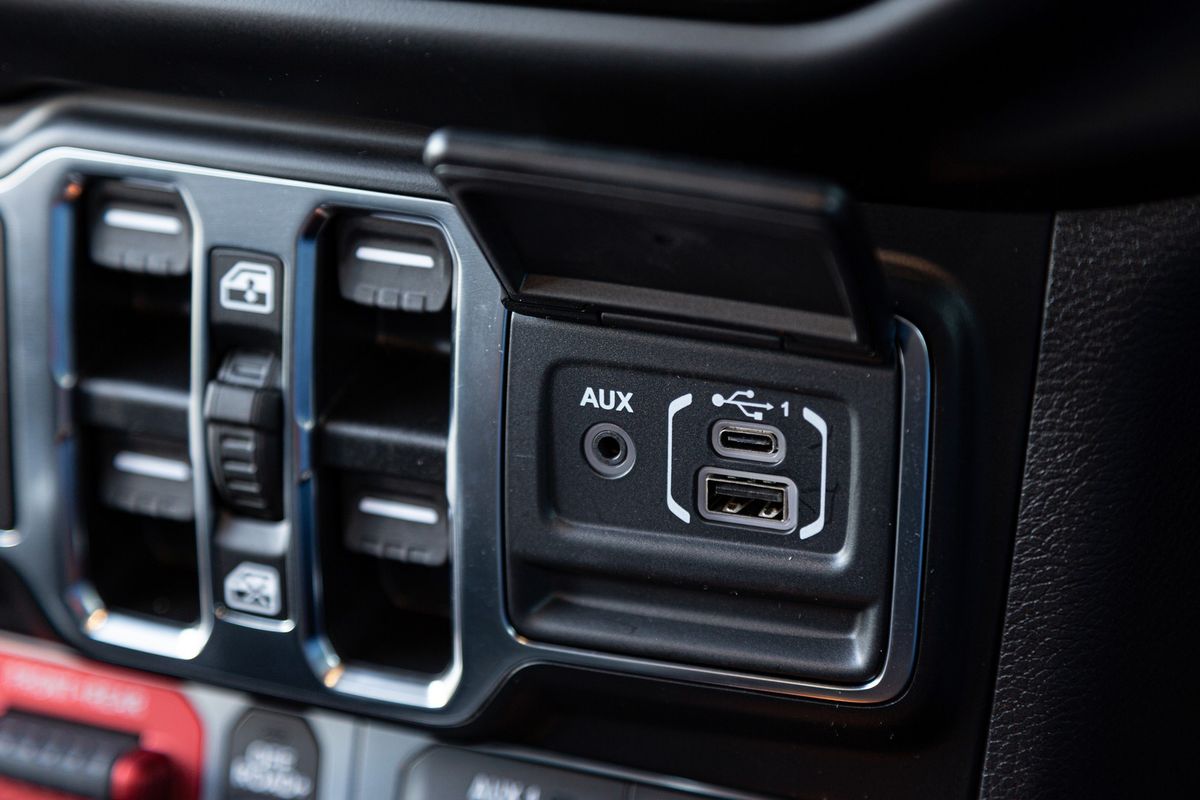 In top-of-the-line Rubicon trim, the Gladiator comes with almost every conceivable “mod con” you’d ever need and the cabin, although comfortable, has a tough-and-rugged ambience. Heated leather seats and a -multifunction steering wheel, an excellent reverse-view camera, USB-A and USB-C ports, Apple CarPlay/Android Auto, plus the ability to plug in accessories (such as winches and additional lights) are some of the highlights. The UConnect infotainment system is good too.