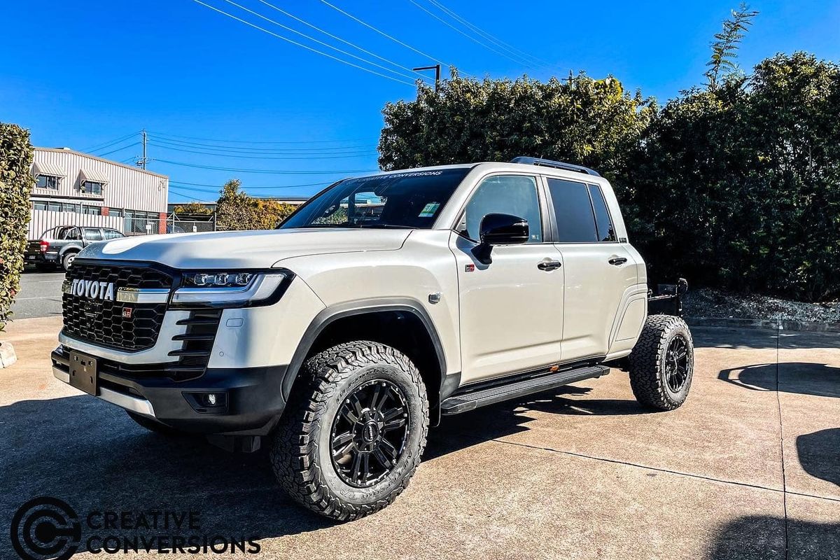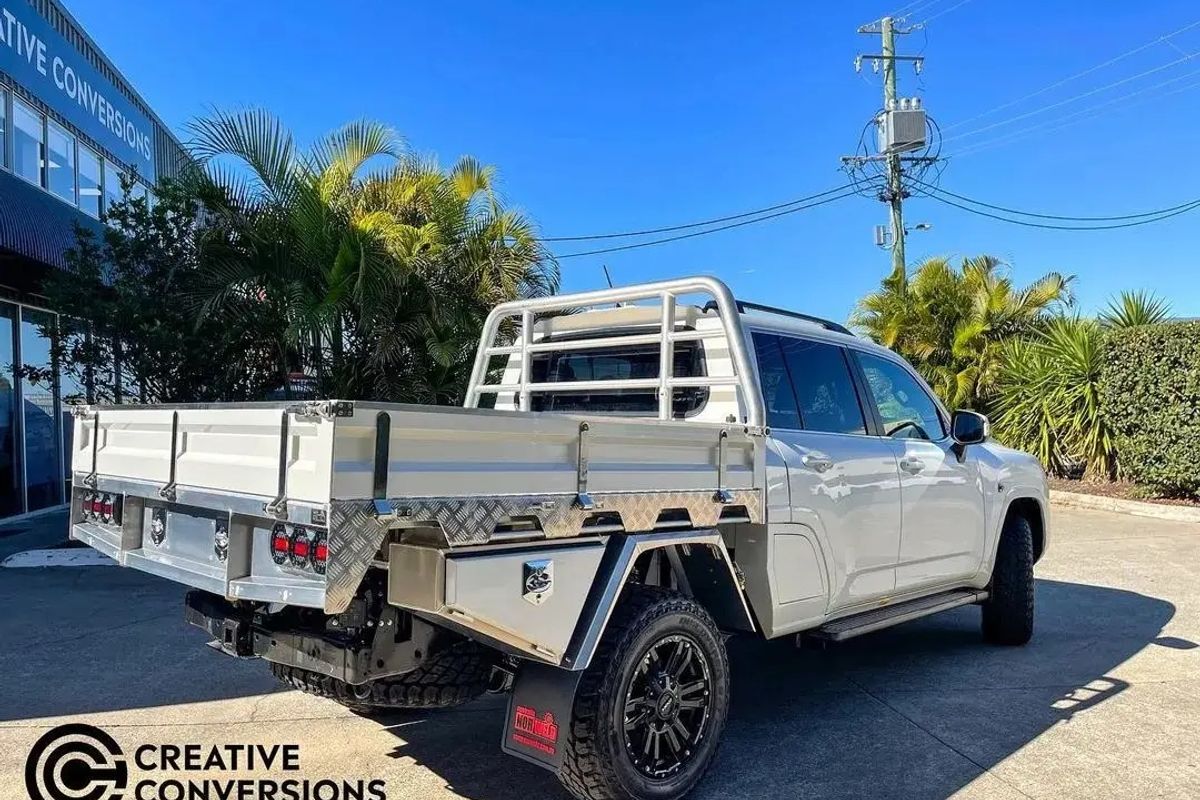 Officially, the Toyota Land Cruiser 300 bakkie doesn’t exist as the Japanese carmaker has not given the green light to build a commercial version of the luxurious SUV. That has not stopped Creative Conversions over in Australia from building a variety of commercially-focused Toyota Land Cruiser 300 bakkie units for sale.