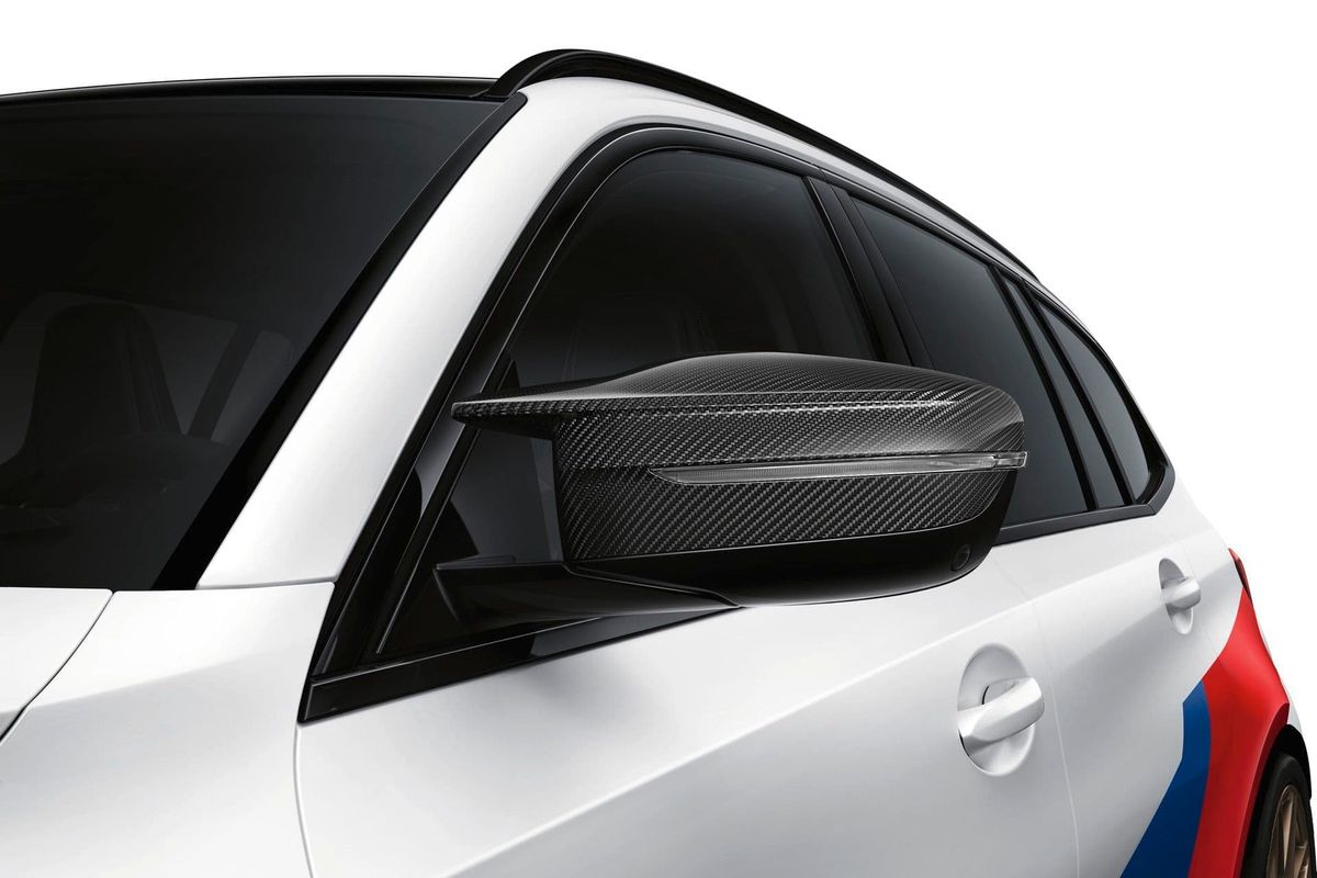 The best part is these goodies are OEM original parts and don’t affect any motorplans. Right, so what’s on offer for the new BMW M3 Touring? Do you like carbon fibre? Good, because you can get generous amounts of the stuff splashed on the front intake, the grille, the mirrors, rear winglet, fuel filler cap and even get small aerodynamic flicks located on the front bumper.