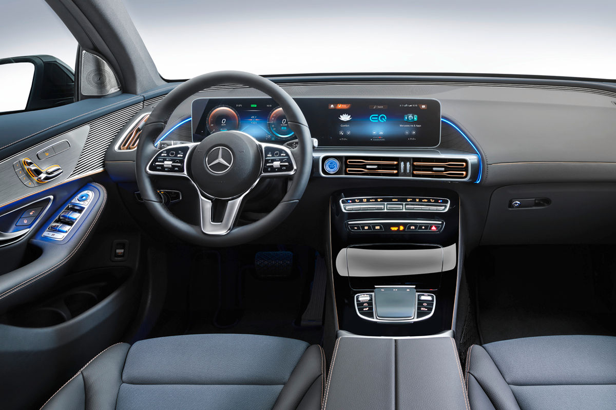 Unlike the EQA and EQB, specifying the AMG Line exterior package (which here adds items such as sportier body styling and 19-inch AMG twin-spoke alloy wheels) for the EQC won’t inflate the base price. So, buyers will have the choice of either the standard look or the AMG-inspired version, with no impact on pricing.