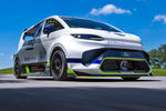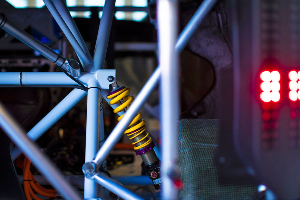 Inside, there’s a full FIA-spec roll cage and racing seats, while a bespoke electronics package allows fine-tuning of the traction control, launch control, pit-lane speed limiter and three-stage regenerative braking systems. There’s even an E‑Boost button that temporarily boosts power and torque. Smokey burnouts are seemingly simple to perform as well thanks to a new system that brakes one axle while spinning the other.