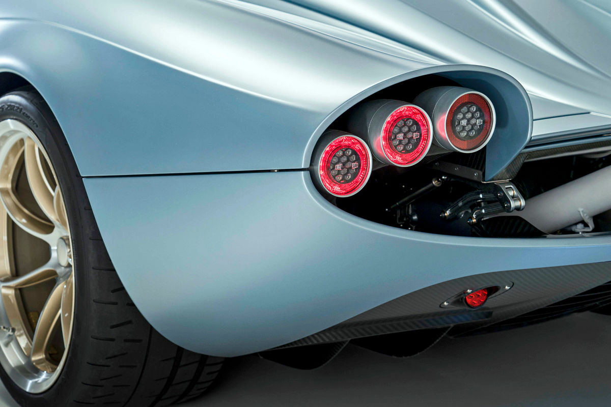 The lack of rear grilles lends onlookers an unobstructed view of the Huayra Codalunga’s exhaust system, which is fashioned from titanium and weighs a mere 4.4 kg. It furthermore features a special ceramic coating and culminates in Pagani’s signature four tailpipes.