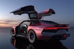 What you see here is the DeLorean Alpha5 the first model in the line-up. This low-slung 4-seat grand tourer features a full-electric engine and gullwing doors, a great tribute to the original DeLorean. It’s by no means a small car, at 5 metres long which puts it in the same ballpark as the current-gen Mercedes-Benz S-Class.
