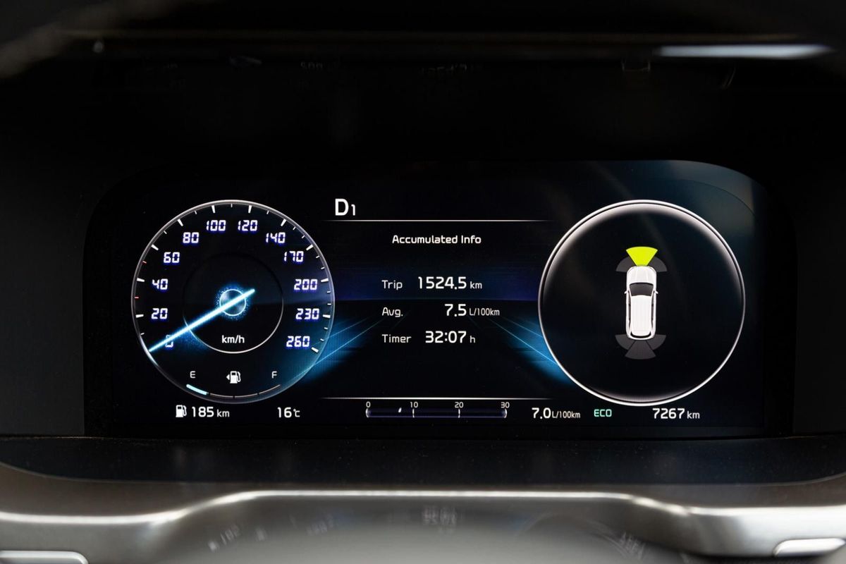 The Sorento’s all-digital instrument cluster offers a side-reverse view to take some stress out of lane-change manoeuvres.