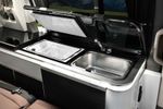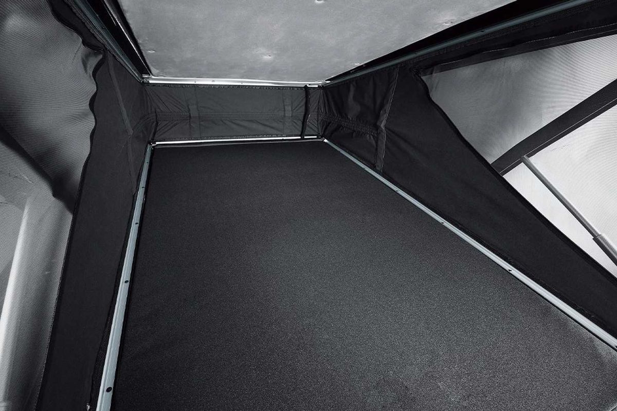 There’s an electronically-controlled pop-up tent in the roof that’s probably for children only and for those perfect summer evenings, a deployable awning with LED lights. At the rear, there’s a deployable table for those picnics. If you’re worried about draining the vehicle’s battery, there’s external power connectivity.