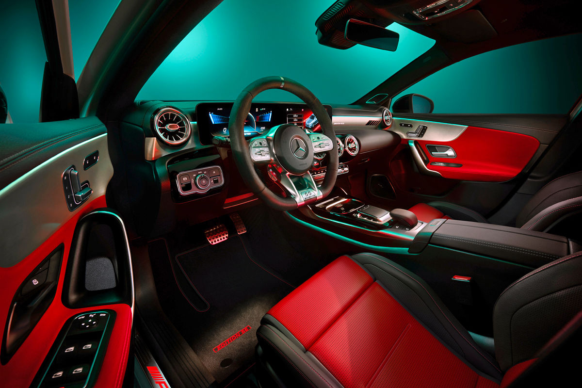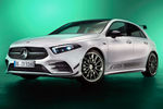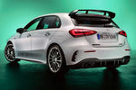 Decals bearing the design of the AMG crest run along the all-wheel-drive hatchback’s flanks, while the standard fuel-filler cap is replaced with a chrome item featuring AMG lettering. In addition, the special version of the A35 gains eye-catching 19-inch AMG light-alloy wheels with a matte titanium grey finish and a high-sheen rim flange.
