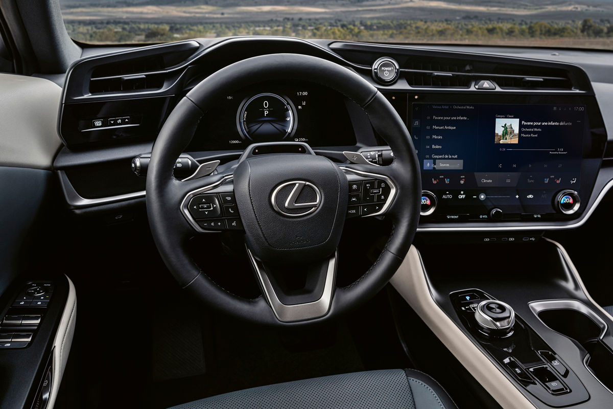 Lexus describes the cabin as “spacious” and says it features various “crafted touches”. A panoramic roof (with a clever dimming function) is set to ship standard, while the door trim and console passing between the driver and front passenger seat create what the firm terms a “clean, wide-open feel”.