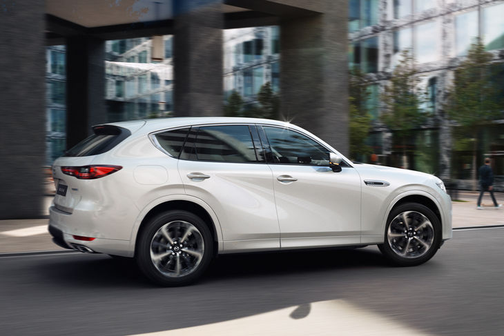 A new eight-speed automatic transmission with a multi-plate clutch makes its debut on the CX-60, which will be available in rear- and i-Activ all-wheel-drive guises. Drive modes will include Normal, Sport, Off-Road, Towing (and EV), while the newcomer’s braked towing capacity is said to be 2 500 kg.