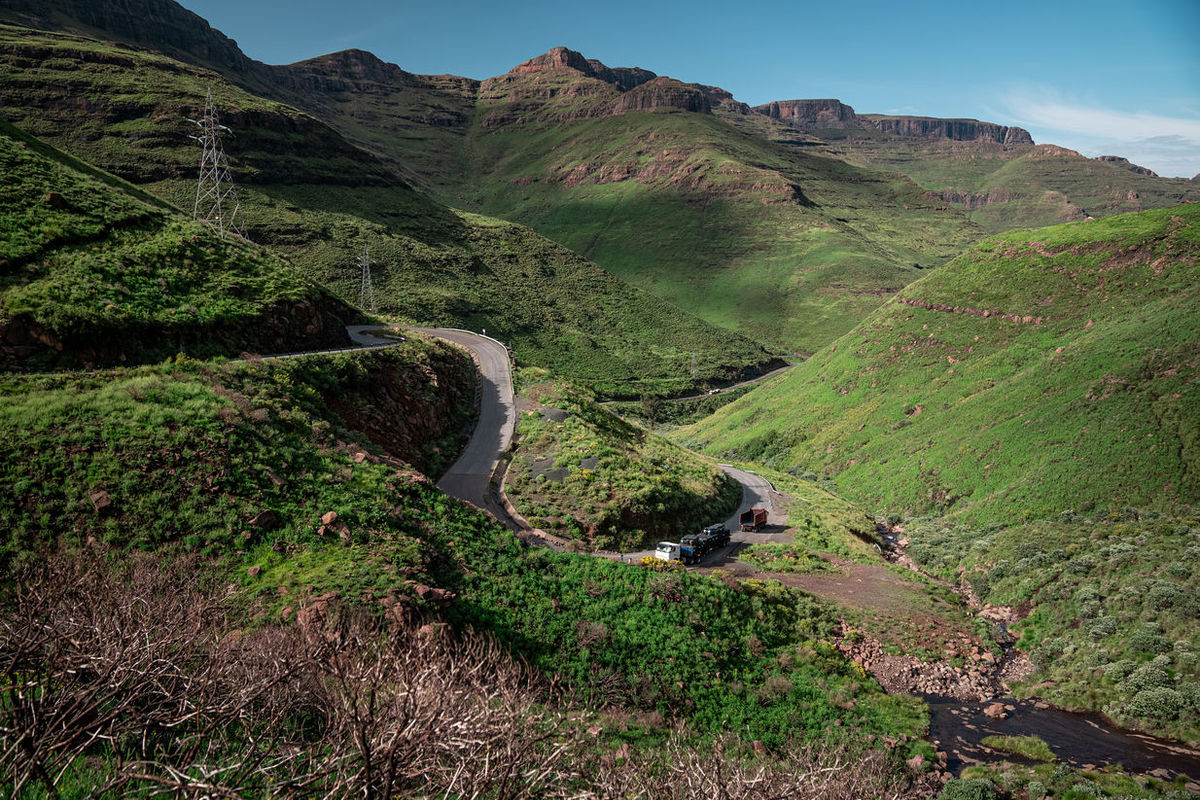After our little photoshoot and breakfast, we rejoined the group and the journey continued. Day 2 did not require much driving, but, then again, driving in Lesotho is slow going. There are many animals, all kinds of debris, people and potholes on the roads, so you have little choice but to travel at lower average speeds. We stopped to take a picture at a low-water bridge, where a construction team was busy building another Lesothan dam. That very location would be 80 meters underwater in the future, which was certainly food for thought.