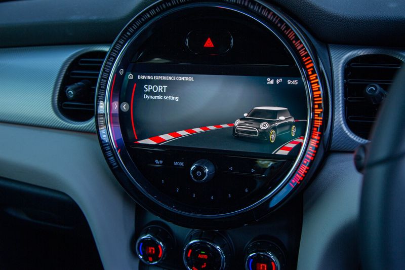 The all-electric Mini comes with a few drive modes, such as Mid (the default setting) and the obligatory Sport. There are two Eco modes: Green and Green+. Green+ gives you the maximum possible range with power diverted from non-essential systems (such as climate control). When the outside temperature indicates 34°C, climate control becomes very essential, so that mode is best saved for emergencies.