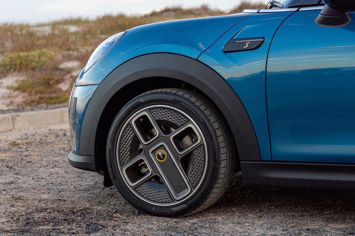 The unique wheel design is the easiest way to spot the electric Mini.