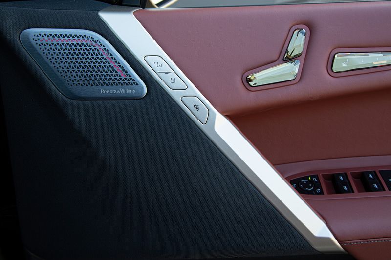 Bowers & Wilkens setup delivers beautiful audio quality. Note the jewel-like switchgear for the electric front-seat adjustment.