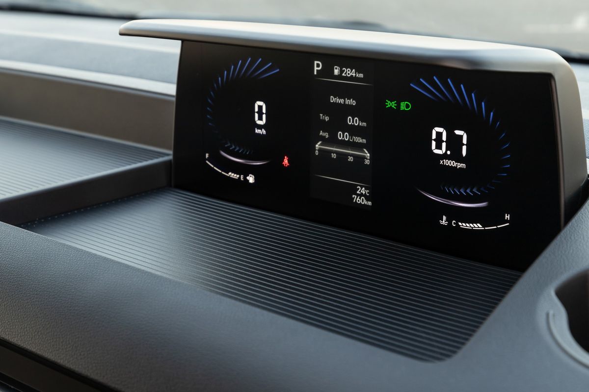There’s no wireless charging pad, either, with a single USB outlet in the front of the cabin, and another two at the rear (in addition to a very useful 2-point 12V power socket). In front of the driver is a pretty generic mix of analogue and digital instrumentation, with the rev counter and speedometer flanking a smaller digital trip computer (including tyre pressure monitoring).
