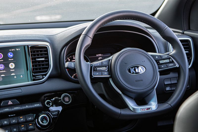 This derivative comes with an all-wheel-drive (AWD) system and, while the GT-Line is not marketed as an out-and-out off-roader, customers may appreciate the benefits of being availed additional grip in adverse weather conditions and when traversing gravel roads. The Kia’s part-time AWD setup sees the Kia use primarily its front wheels for propulsion, with obvious benefits to fuel economy, while the rear wheels come into play when the car detects a loss of grip at the front end. If things get challenging, there is a button to lock the centre diff to bring both axles into play; hill descent control is also available.