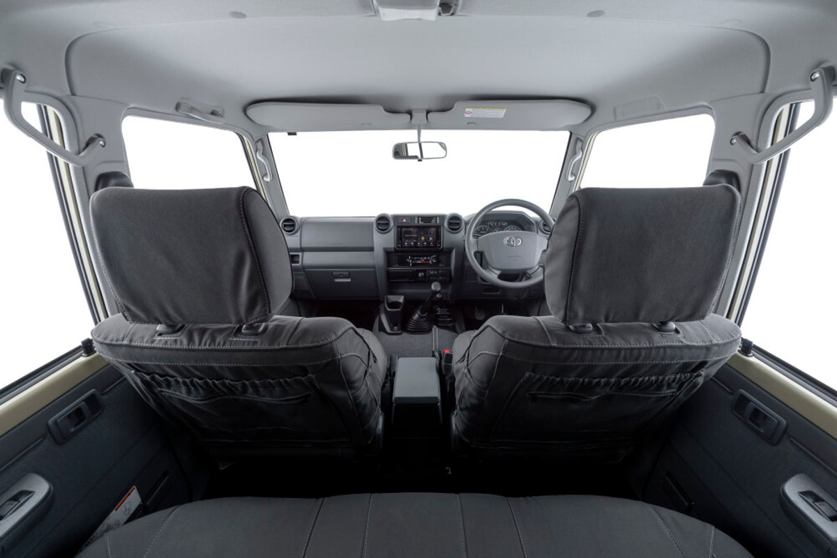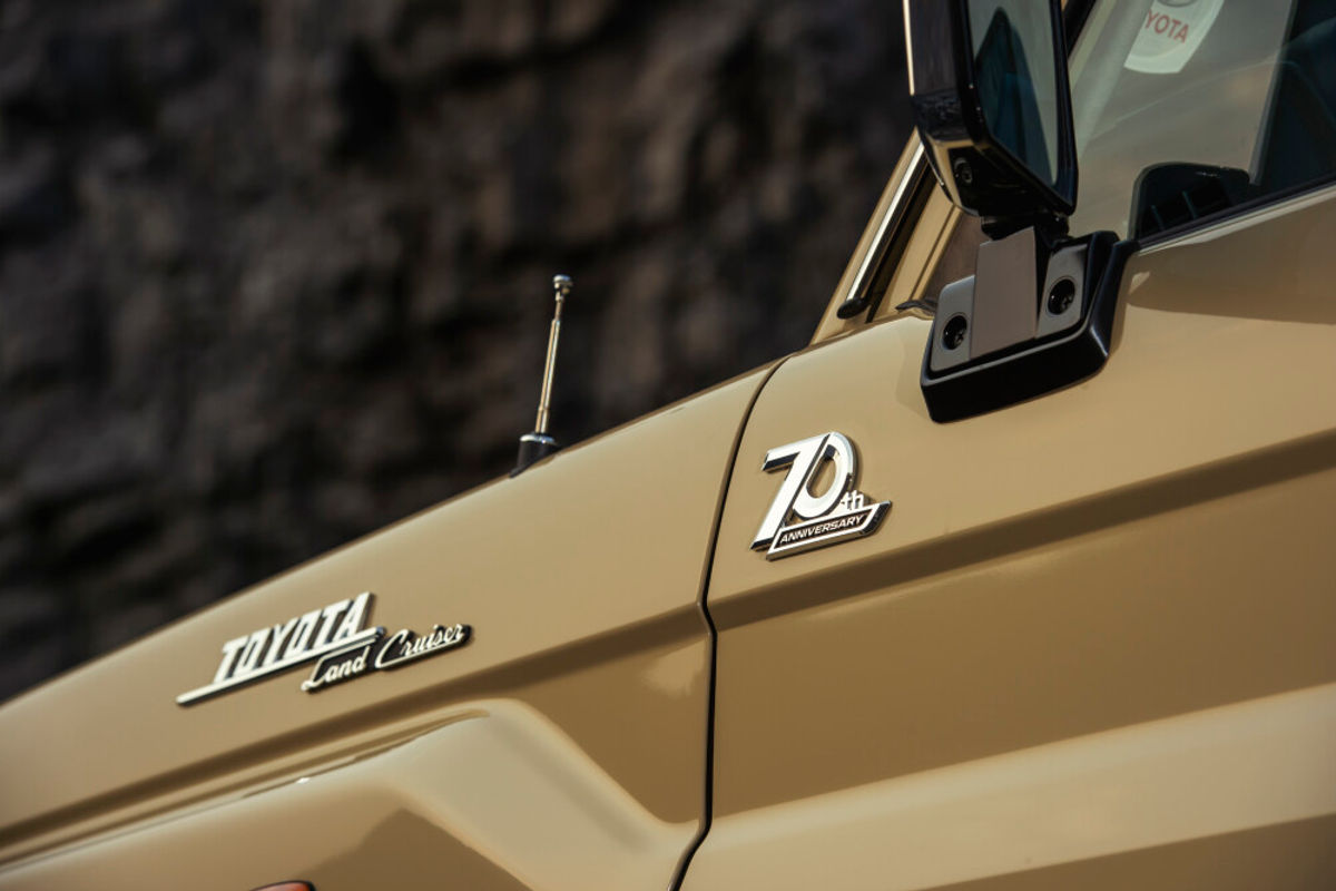 The model is easily recognised with 70-year emblems seen on the bodywork as well on the cotton cloth seat covers. The familiar Toyota roundel has also been replaced with Toyota lettering and badges on the doors are familiar from the iconic Land Cruiser 40-series.