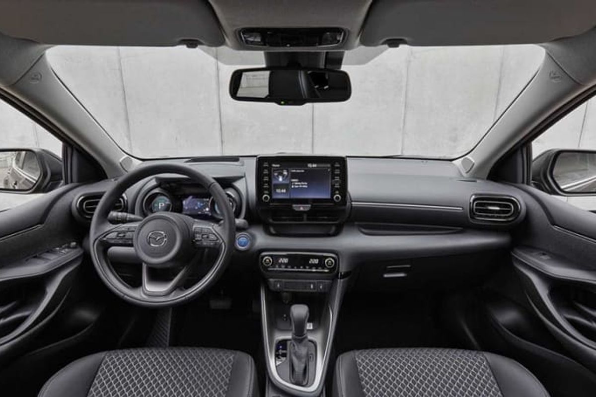 Requiring a Mazda2 hybrid right away, Toyota has allowed its Japanese rival to put a Mazda badge on the Yaris hybrid. The result is an absence of Kodo design, with Mazda badging inside and out.