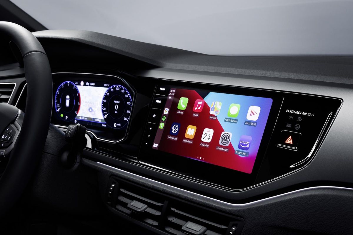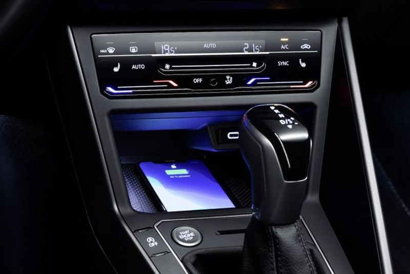 What’s more, Polos equipped with automatic climate control feature a piano-black touch-sensitive panel with digital temperature readouts, below which an abutment with a pair of illuminated USB-C ports is fitted. Finally, a wireless smartphone charging pad (as shown below) can be ordered at extra cost.