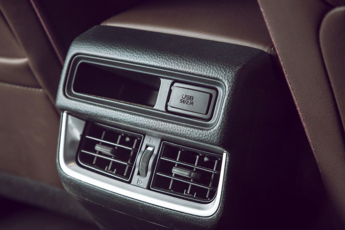 Meanwhile, the Hyundai’s interior has had a major revamp as part of the model’s facelift; the first update you’re likely to spot is the omission of a conventional transmission lever (it’s been replaced with dashboard-mounted selector buttons). The entire centre console has been shifted forward to form a slanted panel that’s more ergonomically positioned. What’s more, it offers extra storage space and a larger storage bin under the armrest. There’s a storage shelf under this panel, where you’ll find 2 USB ports and a 12V socket. There are 2 more USB ports in the rear (the total number of USB ports is 5).