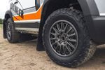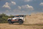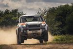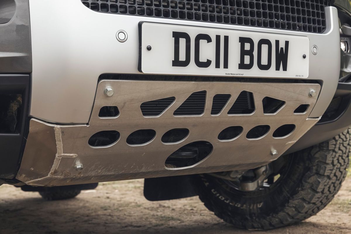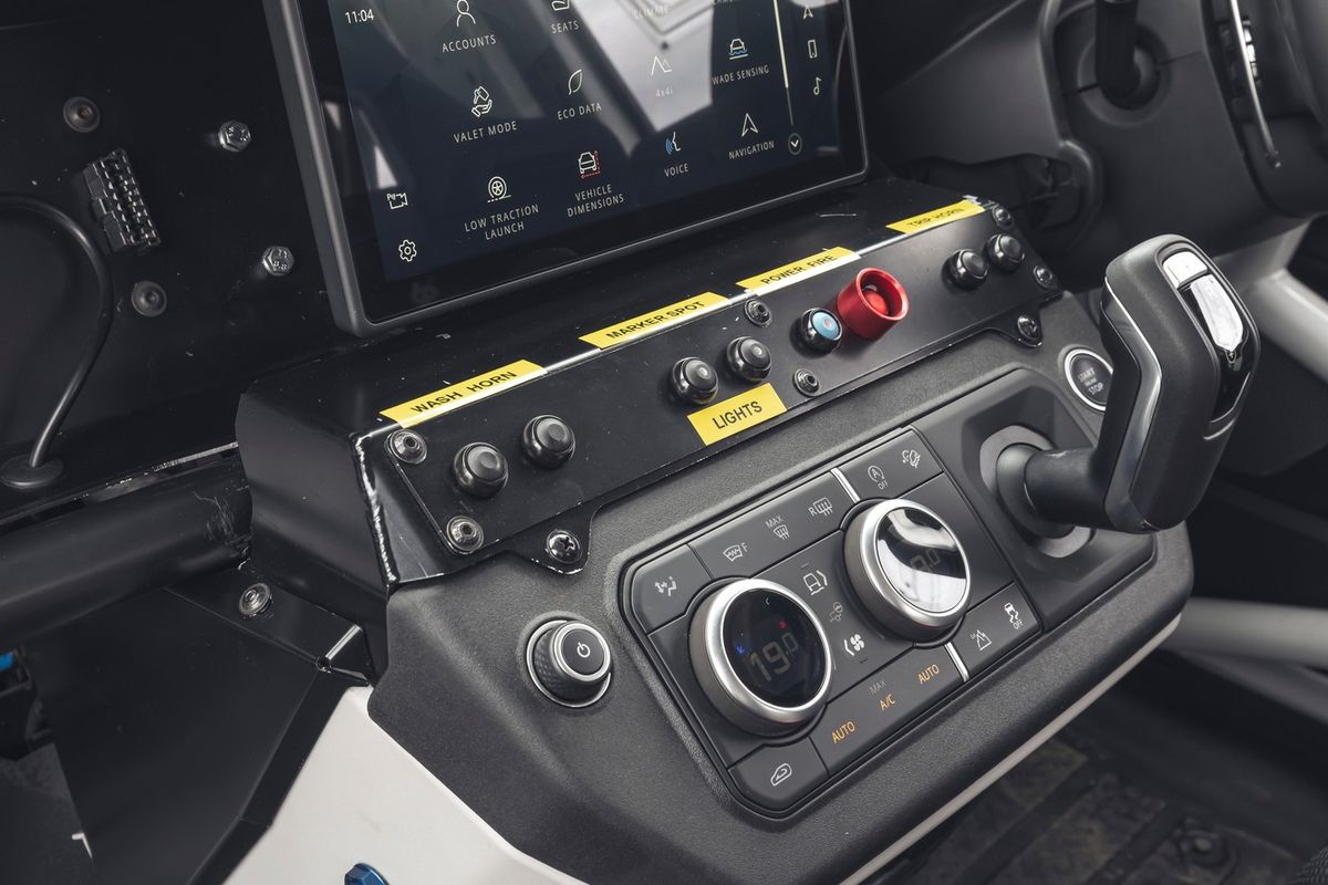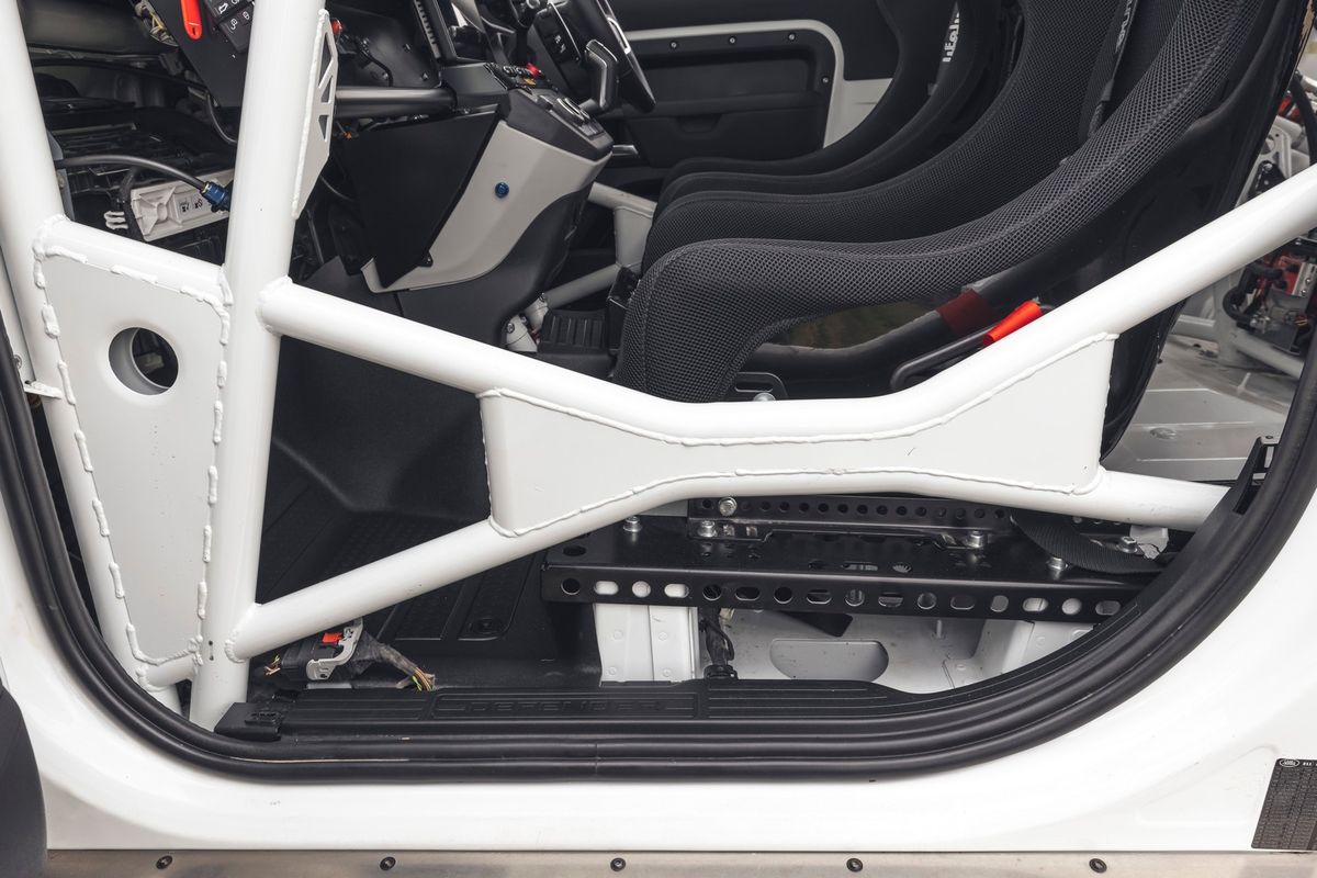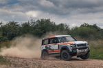 The Bowler Defender Challenge uses a Defender 90 with a 221 kW 2.0-litre turbo 4-cylinder petrol engine as a base. Bowler strips the standard car out and fits a full roll cage, reinforced underbody, cranks up the suspension, bolts on offroad 18-inch rally wheels, and an assortment of other goodies.
