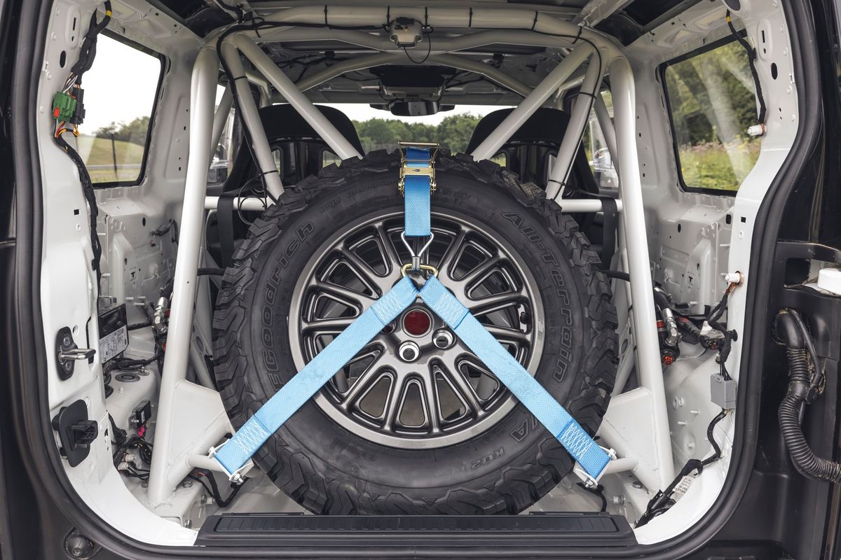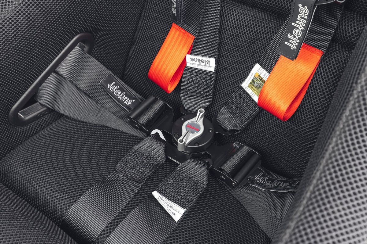 The suspension is special. Designed in collaboration with Fox, it increases the ride height by 25mm. Being a race car the vehicle features electrical cut-offs, fire protection, race seats, carbon fibre paddle shifters and some ergonomic tweaks like a repositioned gear selector.
