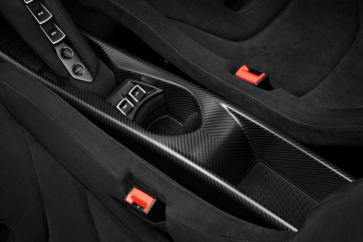 The interior is inspired by motorsport and features carbon-fibre racing seats, carbon fibre centre tunnel and an exposed carbon fibre floor and lightweight Alcantara finishes.
