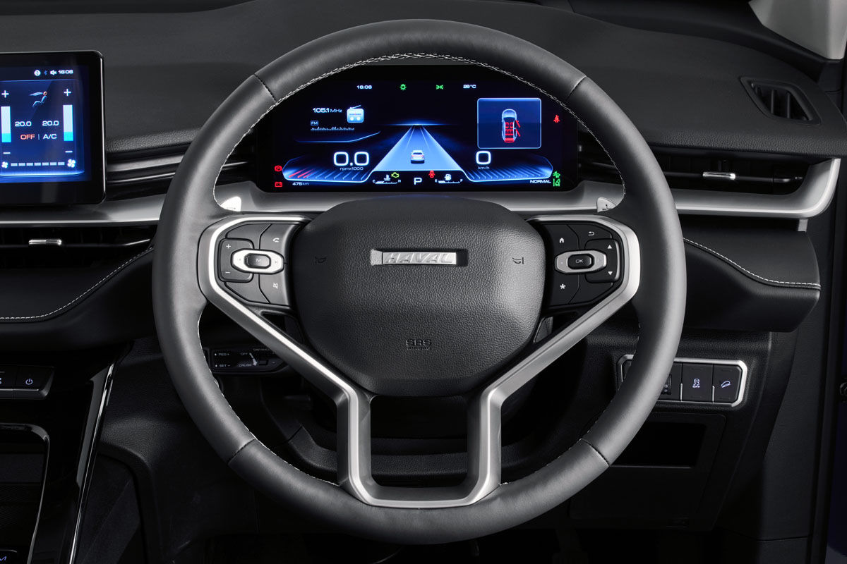 Finished in a high-end gloss, the centre console provides ample storage and cupholders (plus, we would assume, a wireless charging pad), while the L-shaped raised central control console features soft-touch switches, an engine start/stop button and a shift-by-wire transmission dial.
