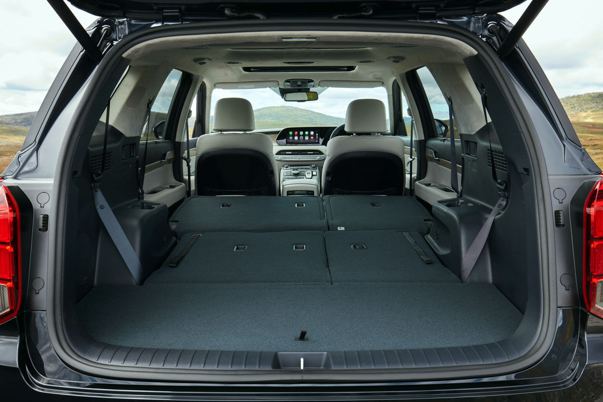 The Palisade’s luggage capacity with all 3 rows in place is only 311 litres, but when the rear seats, which can recline by 10 degrees and split 60:40, are stowed that number goes up to a generous 704 litres. The 2nd-row seatbacks can be folded flat by pressing release buttons in the load bay to create an utterly expansive loading area. What’s more, on top-spec derivatives, the tailgate is both electrically powered and remote operated.