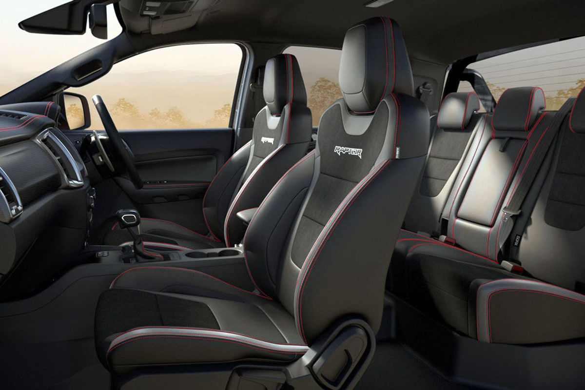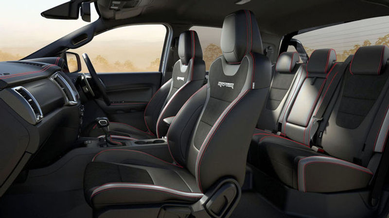 Inside, a new accent package, which takes its cue from the bold exterior decals, has been applied to Ranger Raptor’s Ford Performance interior. It incorporates extensive contrast stitching (in red, as opposed to the current version’s blue stitching), while eye-catching Hydrographic and Black Alley accents feature across the dashboard and door cards.
