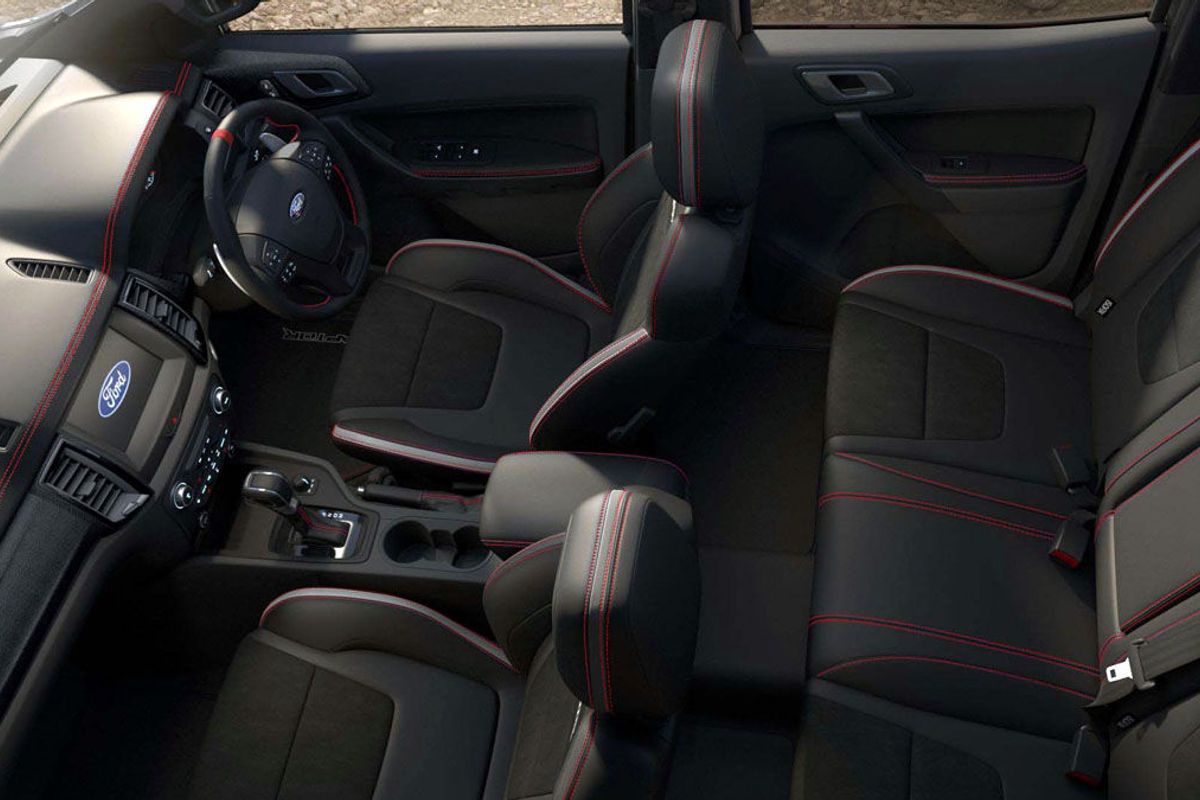 What’s more, Ford Australia has applied a matte-black finish to the flagship bakkie’s expansive grille, door handles, rear bumper cover, tailgate handle, fender vents and foglamp bezels, all of which are complemented by the similarly-coloured extended leg sports bar on the load bed.