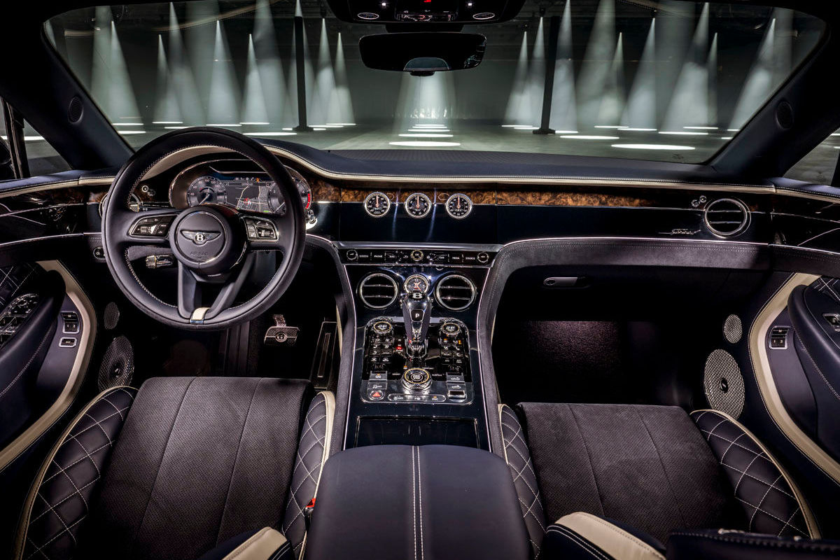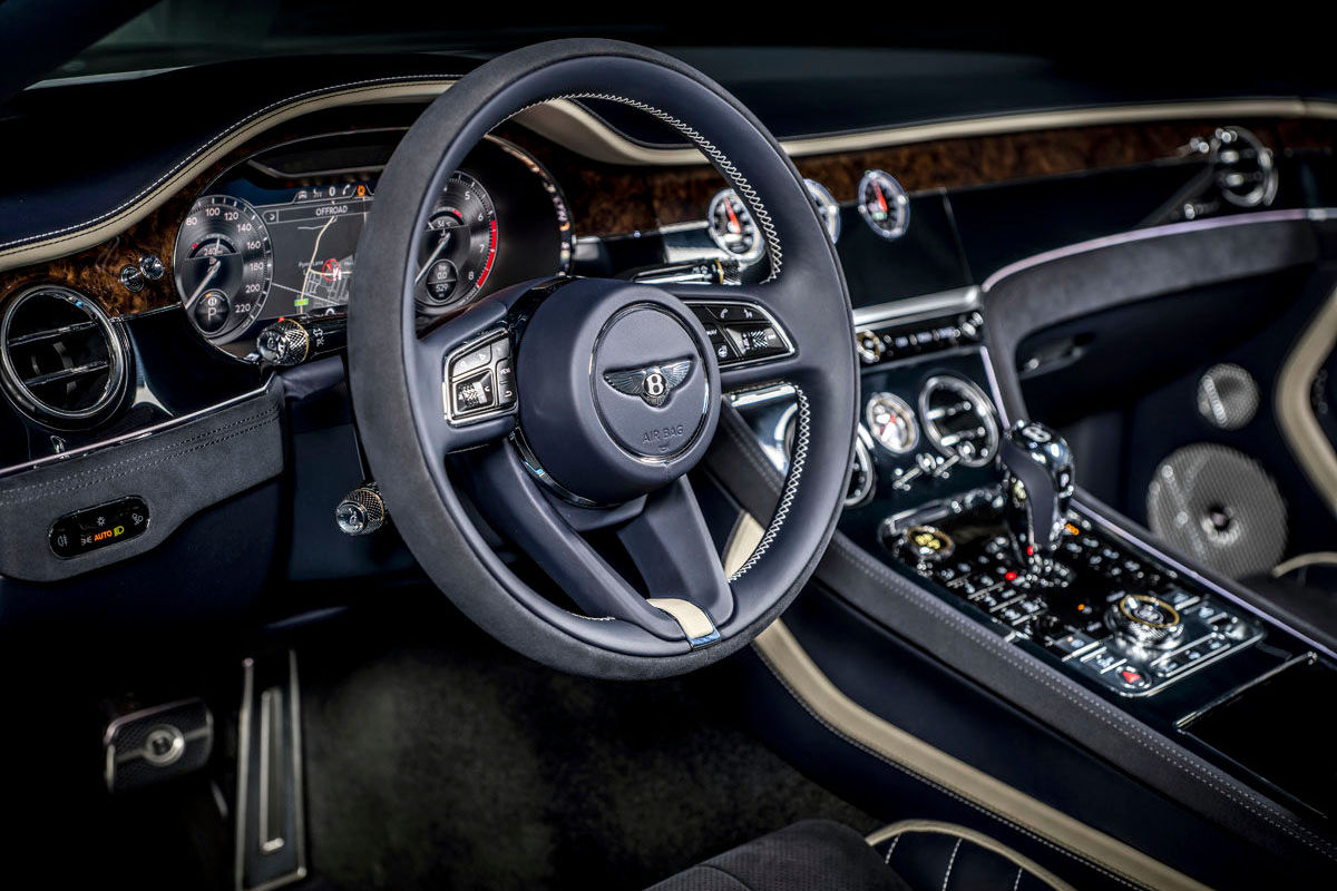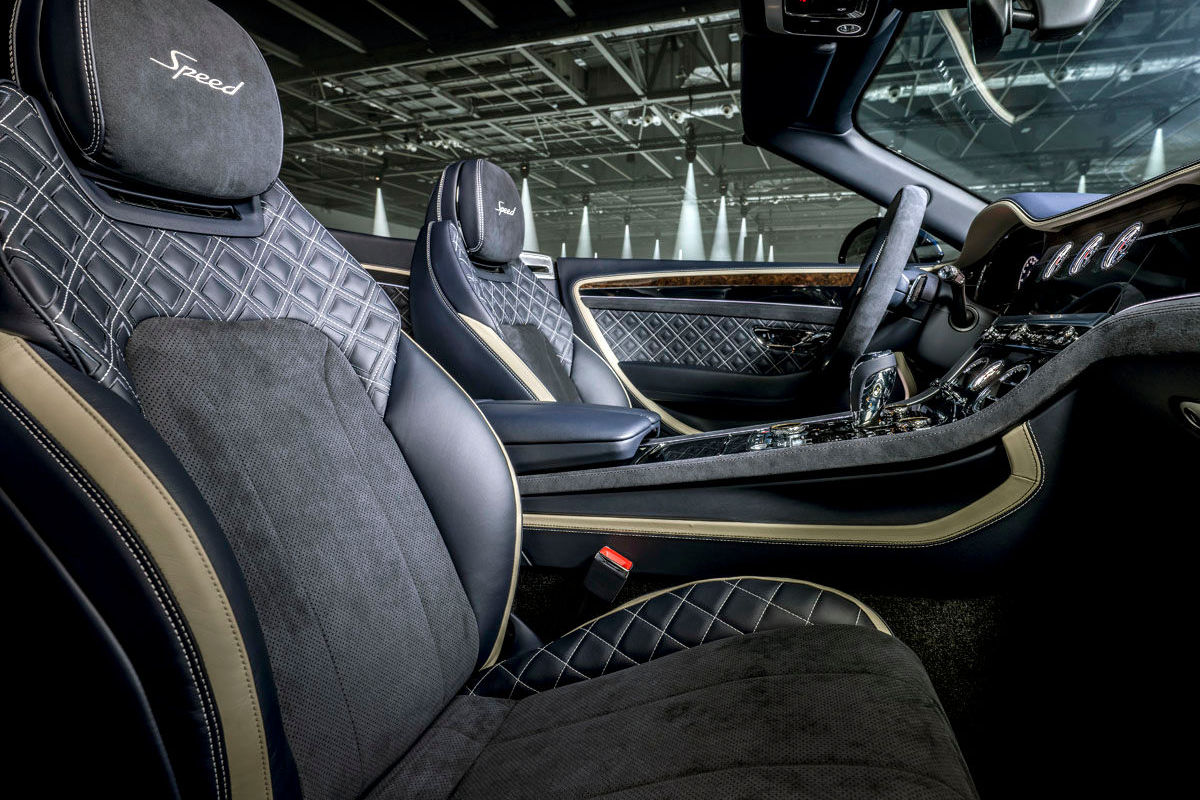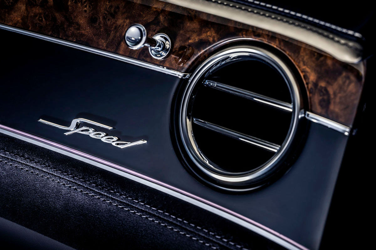 Inside, apart from the application of "Speed" detailing and model-specific sports sills, Bentley offers an optional Dark Tint Engine Turned Aluminium technical finish for the newcomer's centre console.