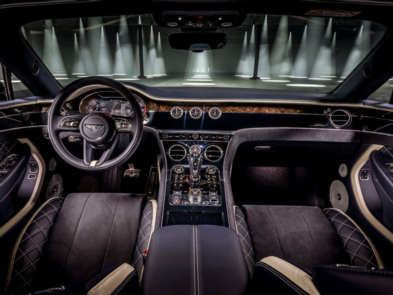The Continental GT Speed Convertible carries over these upgrades; its twin-turbocharged 6.0-litre W12 produces 485 kW and 900 Nm, compared with the standard car's 467 kW and 900 Nm. There is a small, no, trifle downside to the newcomer's open-topped extravagance: Whereas the coupe version is said to sprint from 0 to 100 kph in 3.5 sec, the convertible takes 0.2 sec longer, although the top speed's the same: 335 kph. Bentley has also retuned the 8-speed automatic transmission to deliver gearshifts that are twice as fast as those of the standard car, as well as more responsive downshifts.