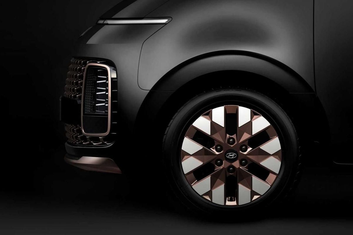 A more premium-looking version, called the Staria Premium, features a unique mesh pattern for the grille, chrome surrounds for the LED headlights and a tinted brass-chrome finish seen on the Hyundai emblem, wheels, mirrors and door handles. This version rides on exclusive 18-inch wheels with diamond pattern and graphics.