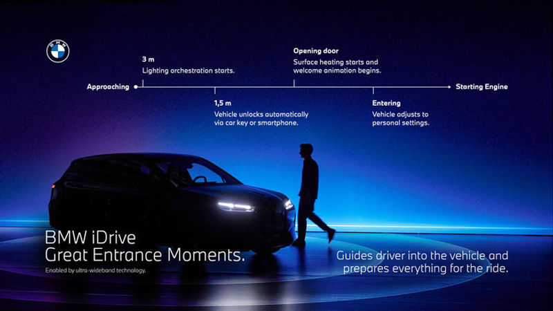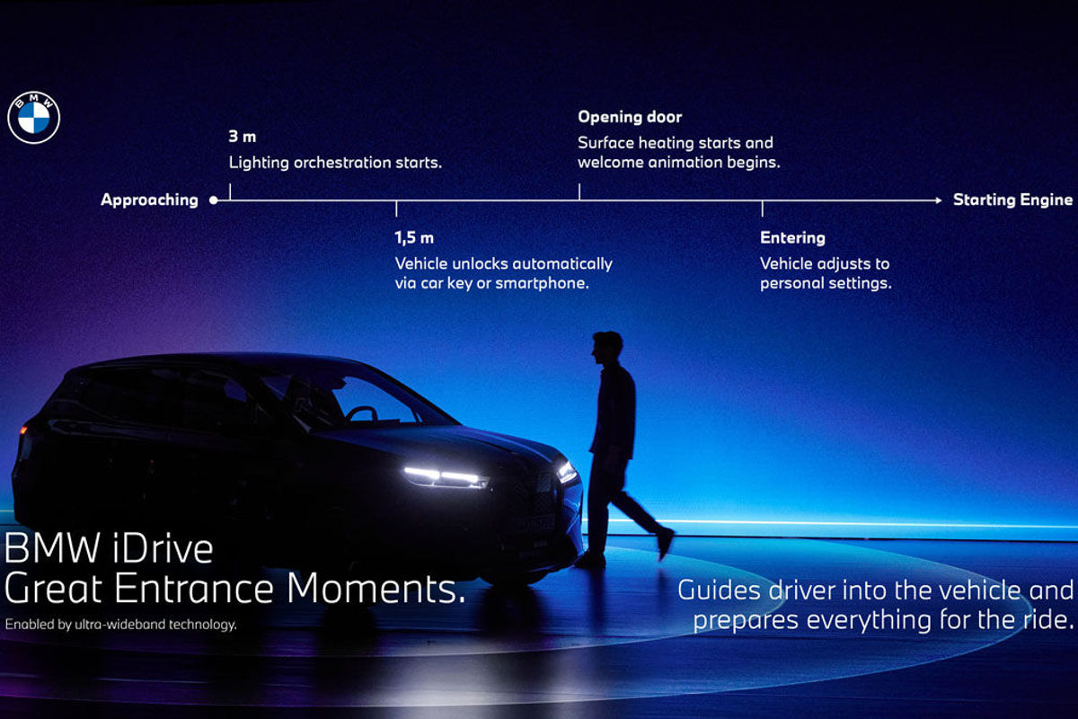 Finally, cars with iDrive 8 will feature a new welcome/start-up programme, powered by ultra-wideband radio technology. The car senses when the driver is approaching the car by communicating with their key/smartphone. Then, when the driver is 3m away from the vehicle, the cabin will light up with soft exterior and interior lighting patterns. The door handles and boot handle illuminate too and, when the door is opened, the iDrive system starts up automatically.