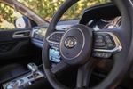 The lane-support system is displayed directly ahead of the driver in a 7-inch digital instrument cluster that further contributes to the upmarket look of the cabin. The instrument cluster, however, isn’t configurable. As for the steering wheel, it’s wrapped in leather and is equipped with mounted controls for the audio system, adaptive cruise control, telephony and voice control function.