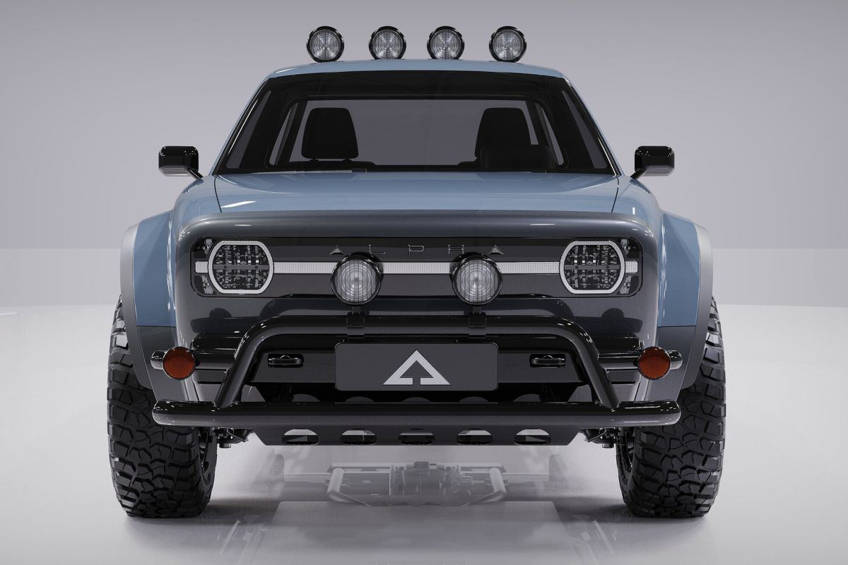 The bakkie in question is Alpha’s Ace Wolf, which looks like it has just rolled out of a 1981 dealership. Styling and exterior design is nothing like the Cybertruck or anything from Rivian.