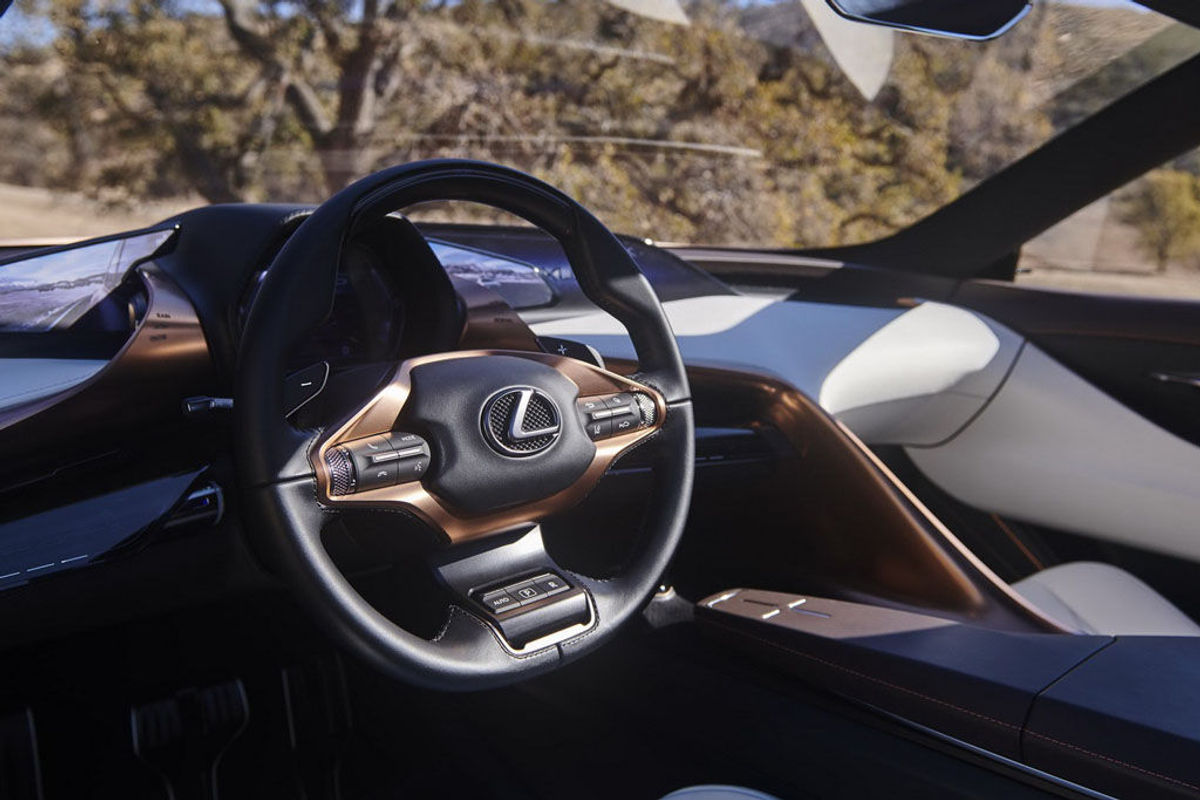 In keeping with the LF-1 Limitless' sporty packaging, the fascia is sweeping and driver's position low and engaging.