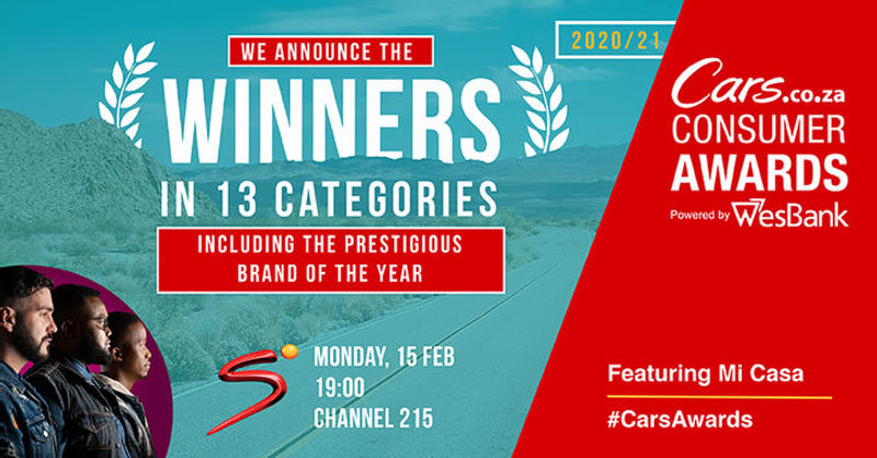 The #CarsAwards is the largest and most influential awards event on the South African motoring calendar. The 2020/2021 iteration of the Cars.co.za Consumer Awards – powered by WesBank will culminate in the announcement of the winners across 13 categories, as well as the announcement of the coveted Brand of the Year winner, all of which will take place on DStv’s channel 215 (Motorsport HD) on Monday 15 February at 19:00. The show will run for an hour but, in case you miss the premiere, there will be multiple repeats of the programme thereafter*.