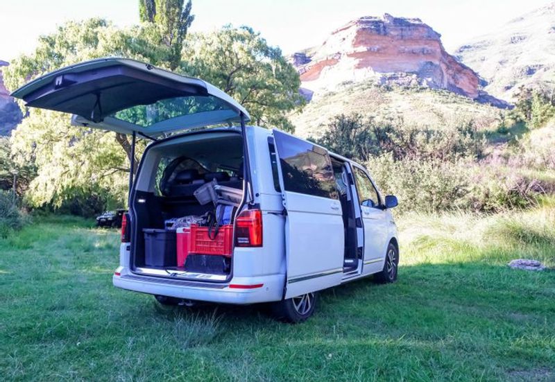 We had lots of luggage and camping equipment to haul to our destination, which meant that only the 2 middle seats were free to use during our trip as we used the rear bench as extra storage for bags and equipment. The foldable table served as a mobile work station and with multiple 12V sockets available, we were able to use the Caravelle as a charging station for laptops, cellphones and camera equipment by using an inverter, which is a must-have piece of equipment on any camping trip, unless, of course, you are Bear Grylls.