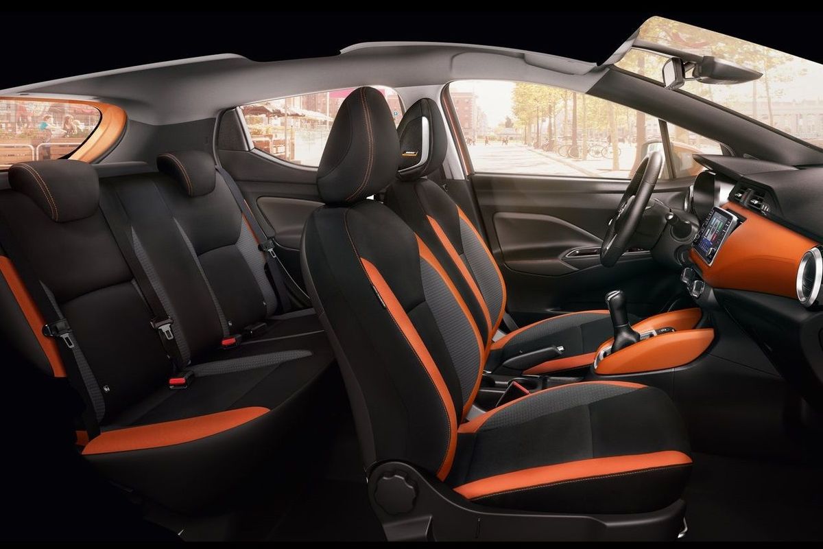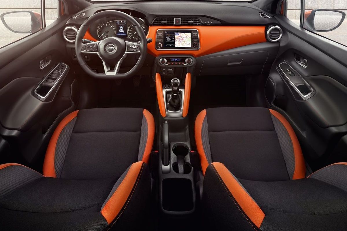 The Micra N-Design’s interior features black cloth seats with grey accents with leather-look finishers for the front panel, kneepads and inner doors. Buyers looking for a more vibrant interior can opt for an Energy Orange interior and a range of matching accessories to customise the look even further.