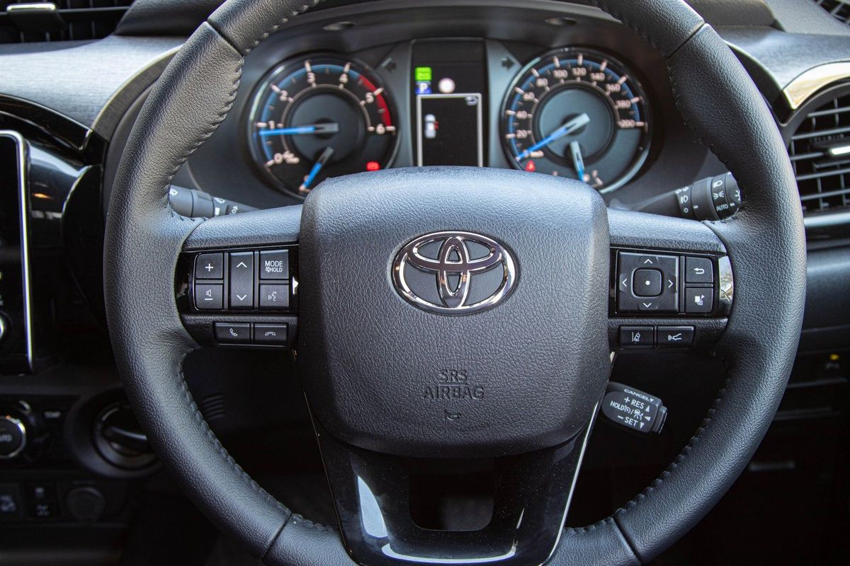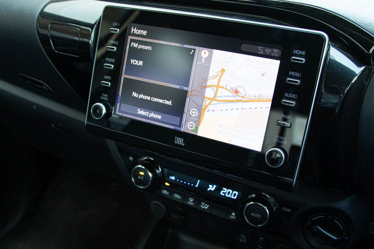 The big news inside is tech-related. First of all, the Hilux now features an all-new 8-inch infotainment system that is compatible with Apple CarPlay and Android Auto. This allows for music streaming services, as well as access to real-time navigation and traffic info via Google Maps. As a bonus, there's now an in-car Wi-Fi hotspot and complimentary 15 Gb of data. The touchscreen console still incorporates hard buttons for major functions, which makes it easier to use the system on the go. Secondly, Toyota has also introduced a 9-speaker JBL sound system as standard.