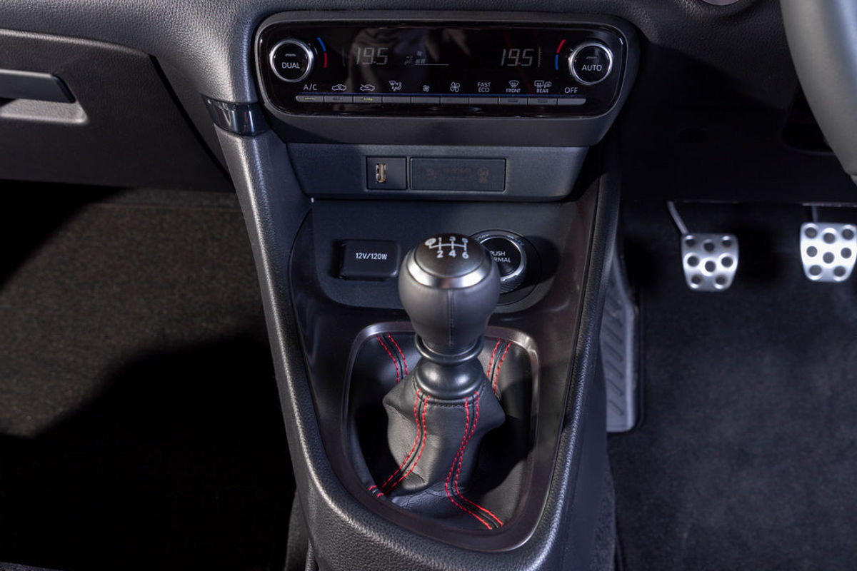 All of this is packed into a superb body, complete with wide, flared arches and aggressive air intakes up front, while inside are a pair of bucket seats and read-outs in the cluster, which relate to the GR Yaris’ seriousness. An Intelligent Manual Transmission (iMT) function also smooths out up- and down-shifts through automated rev-matching, although you can switch it off and enjoy the Yaris’ talents all the more.