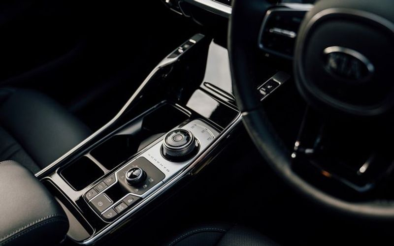 Kia effectively opened up extra oddment space in the centre console by switching to a Jaguar-like rotary transmission selector.