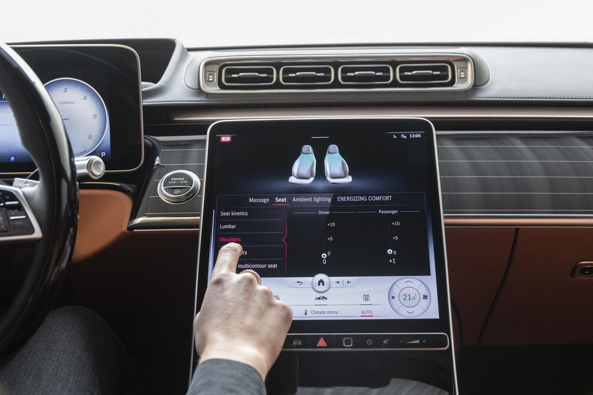 The instrument cluster has been upgraded with the option of 3-dimensional displays and augmented reality has found its way into the head-up display. And what about occupant comfort? The seats can be optioned up to carry 19 motors each, which offers ranges of longitudinal, height, angle, backrest and head restraint adjustment to seat cushion depth and even (for the front passenger) heel support adjustment.