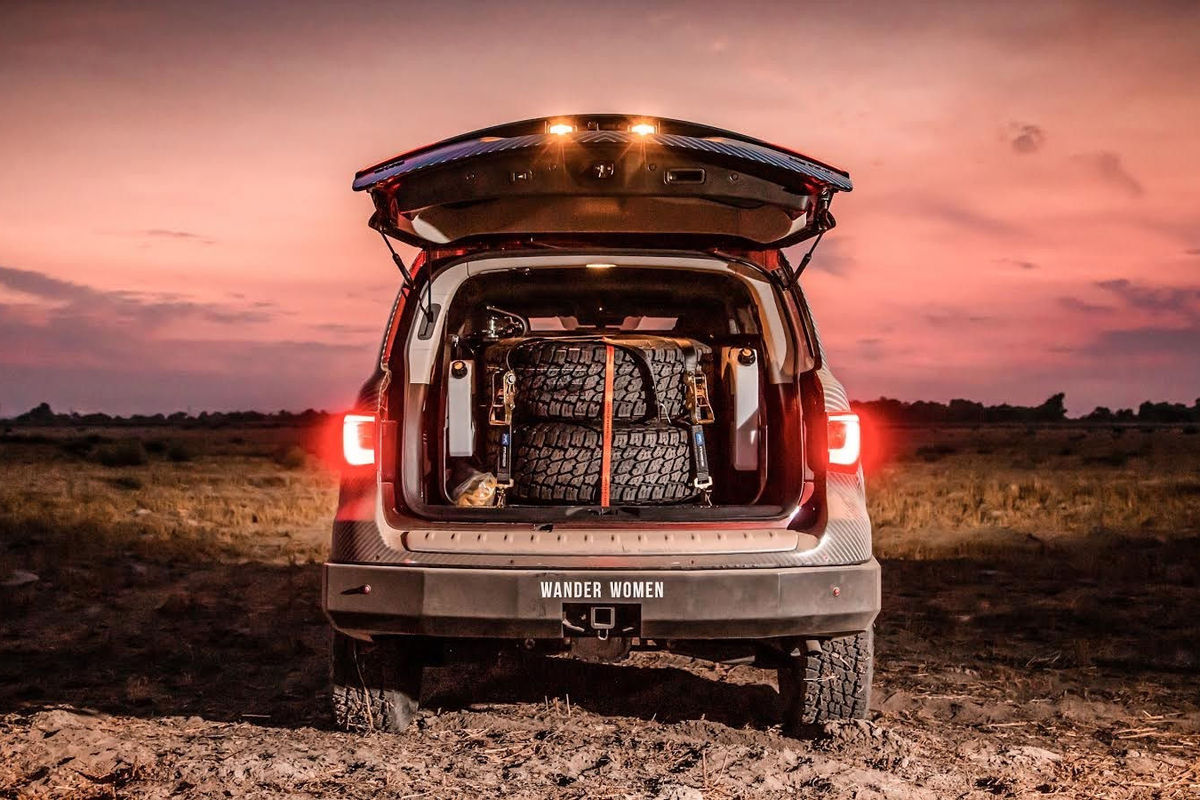 Beyond the improved wheel articulation in technical off-road conditions, this QX80 also rolls Nitto Terra Grappler tyres. Realising that the most adventurous Infinity QX80 owners might risk more than one puncture on a particularly testing route, there are two full-size spare wheels in the rear cargo area, between the folded-up third-row seating.
