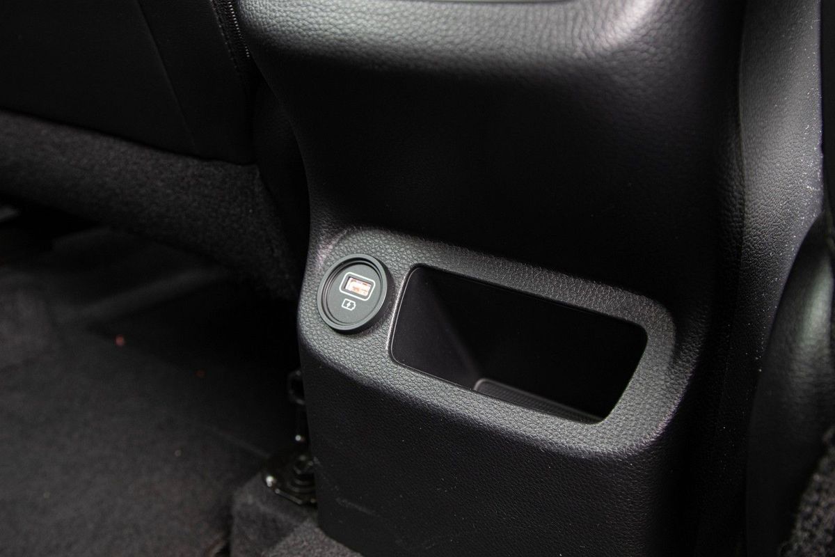 Rear legroom is great and you can just see the centrally-located USB charging port.