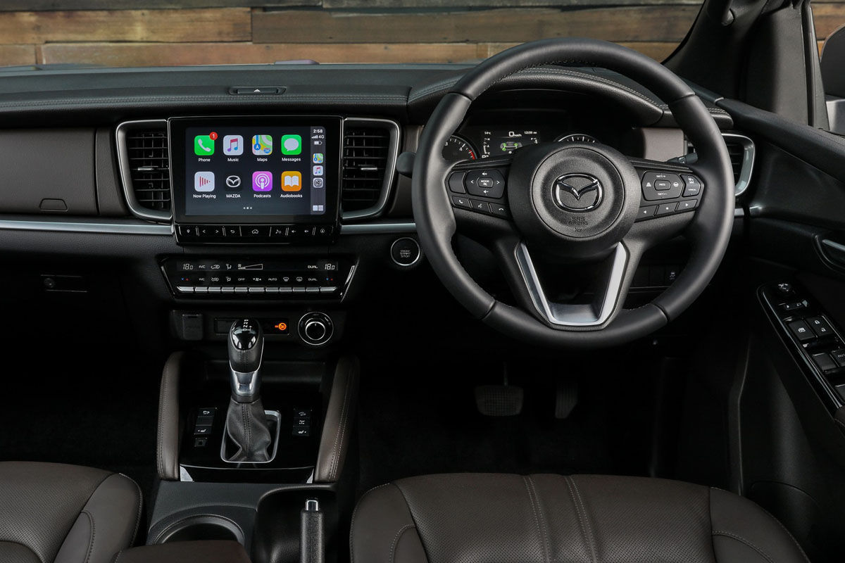However, the sweeping soft-touch dash, instrument cluster (with digital speedo) and air-vent designs are unique to the Mazda. In some markets, top-spec BT-50 derivatives feature electrically-adjustable (including lumbar) and heated front seats, leather trim, dual-zone climate control, keyless entry/start, auto headlights and -wipers, and parking sensors both front and rear. The rear seats are said to offer decent legroom and are fitted with ISOfix child seat anchors, and aft passengers are availed separate air vents.